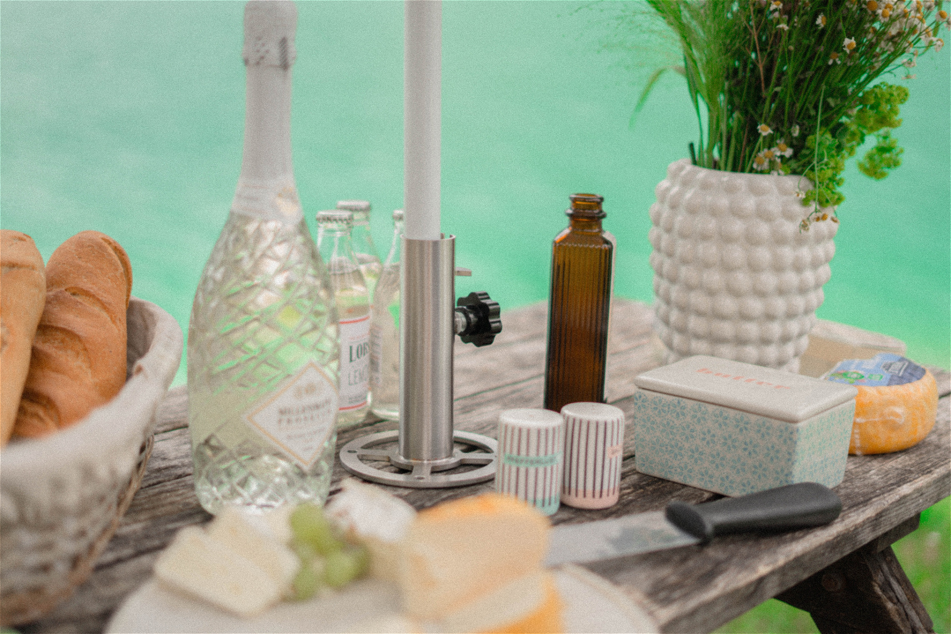 Ideal for the next trip to the swimming lake, beach or outdoor pool. The dock umbrella stand is your ideal companion for hot days in summer. We all know that a shade providing umbrella is still the best way to protect yourself from dangerous UV radiation. Unfortunately, many umbrella stands and umbrellas are impractical to use and cannot be attached to bathing docks or wooden sunbathing platforms. The dock umbrella stand offers exactly these features. It can be attached practically anywhere where wooden boards/planks are mounted with gaps of at least 5mm. No matter if bathing docks, wooden sunbathing platforms, tables or park benches. The dock umbrella stand is mounted and demounted in seconds. The umbrella stand is small, lightweight and has room in any beachbag or backpack. With the four included lawn spikes, the dock umbrella stand can also be fixed in the meadow.